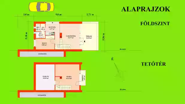 MINDKÉT SZINT ÖSSZESEN: 77,83 m2
