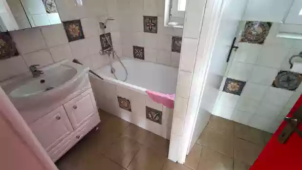 A képen a fürdőszoba (kád, -mosdó) látható.